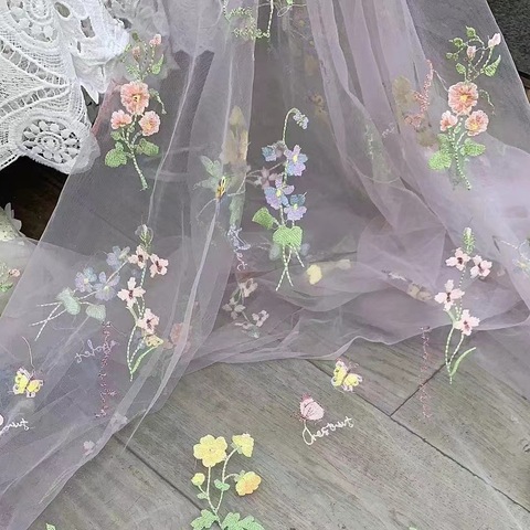 絶妙な蝶花柄刺繍生地-子供のファッションデザインのためのスイスのドットネット布